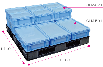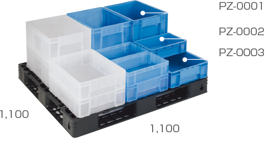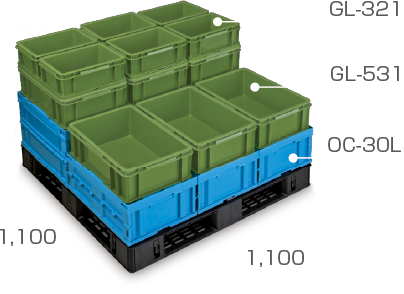 1,100mm×1,100mmパレットにはOCタイプ、PZタイプ、TRタイプ、GLコンテナ。