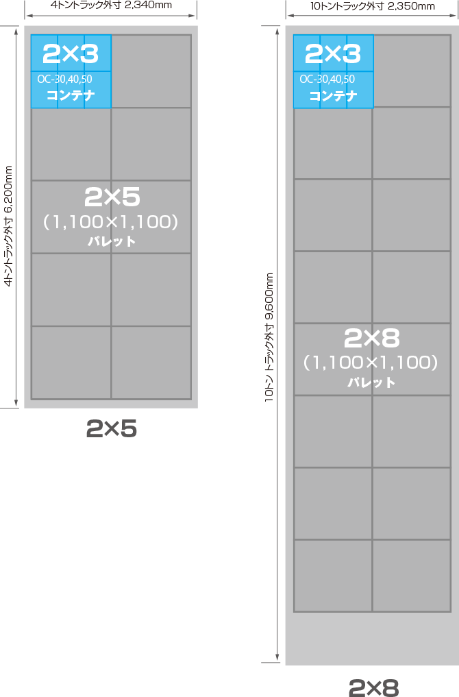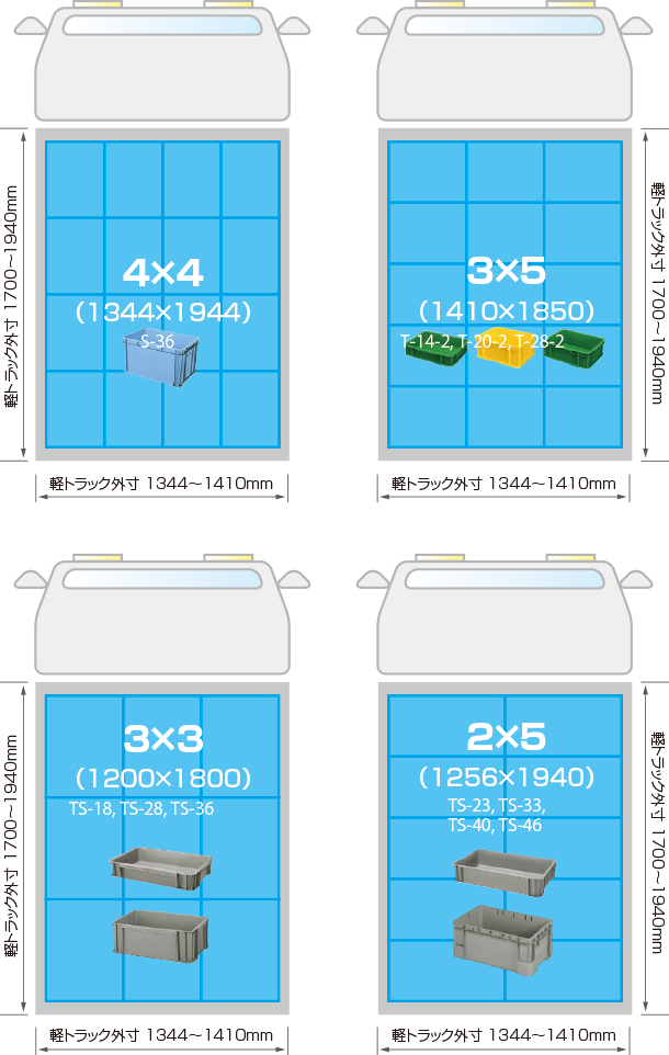 ※上記サイズはあくまでも一般サイズであり、実際の運用時はトラック荷台サイズをご確認の上ご使用ください。