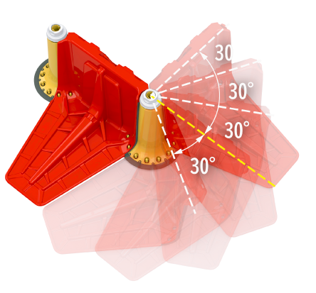 連結パーツ(黄色)は30度間隔で差し込むことができます。