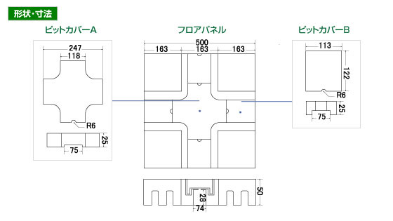 フロアパネルは、環境に配慮し再生ポロプロピレンを100%使用しています。また、ピットカバーもポリプロピレン製ですのでリサイクルが容易です。