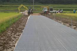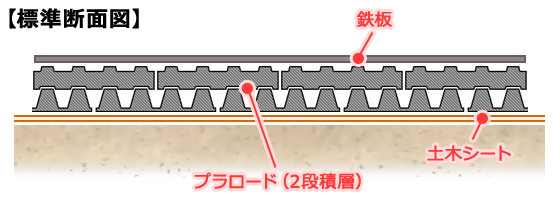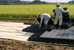 プラロードは、軽量で地盤の圧密沈下が少なく撤去後の原状復帰が容易。