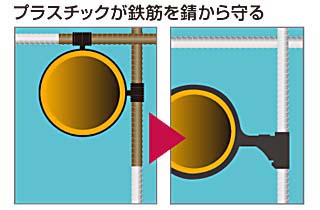 スリーブホルダーはプラスチック製のため、ボイド管を外した後に水が結束線を伝って鉄筋が錆びる心配はありません。