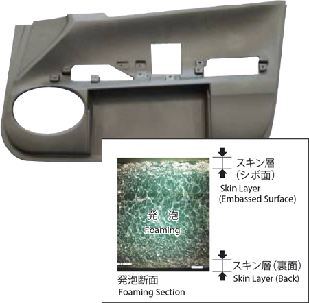 This technology is to foam automobile interior components twice as large as the original during molding to greatly reduce its weight.